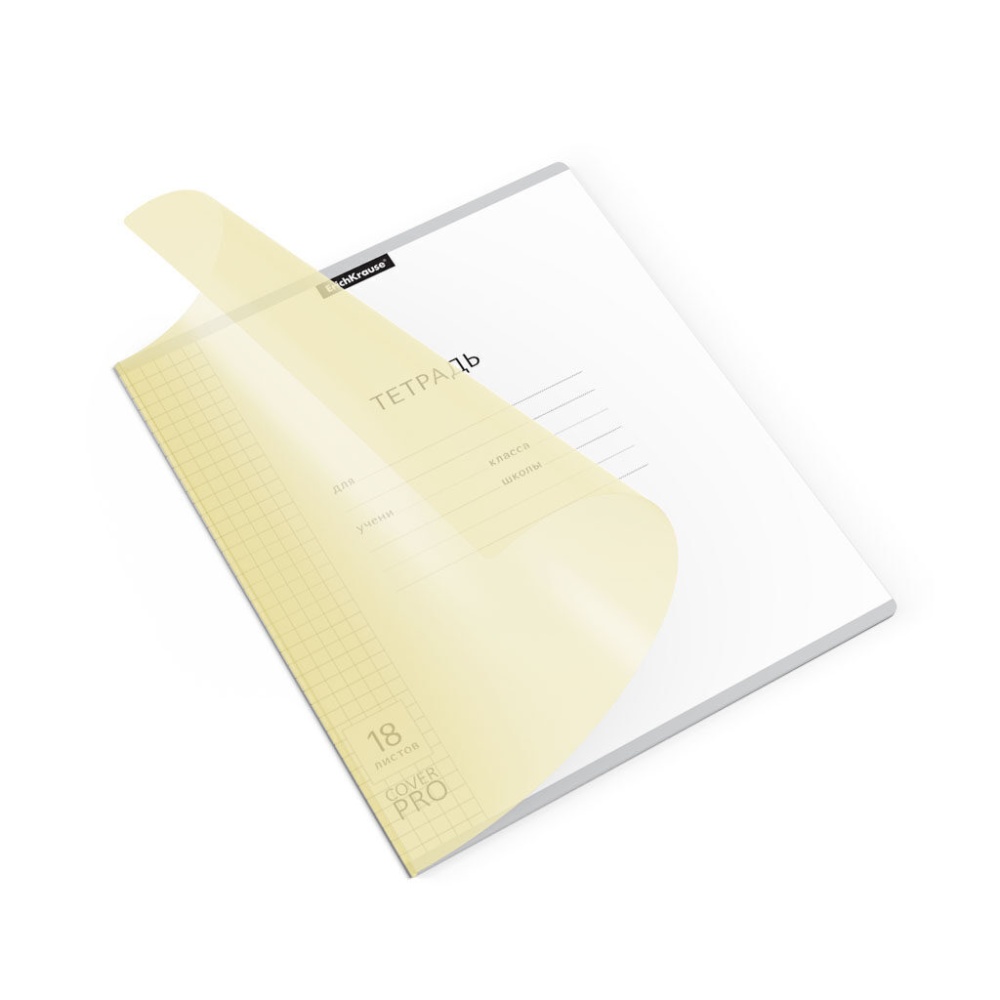 Тетрадь школьная ученическая формата А5+ (170x203 мм). Двойная обложка: внешняя выполнена из высококачественного износостойкого цветного пластика с фактурой апельсиновая корка, внутренняя из офсетной бумаги. В блоке 18 листов в клетку. Бумага офсетная плотностью 60 г/м2. Цвет линовки синий. Скругленные уголки обложки и блока. Тип скрепления скоба. Тетради упакованы в термоусадочную пленку по 10 штук.