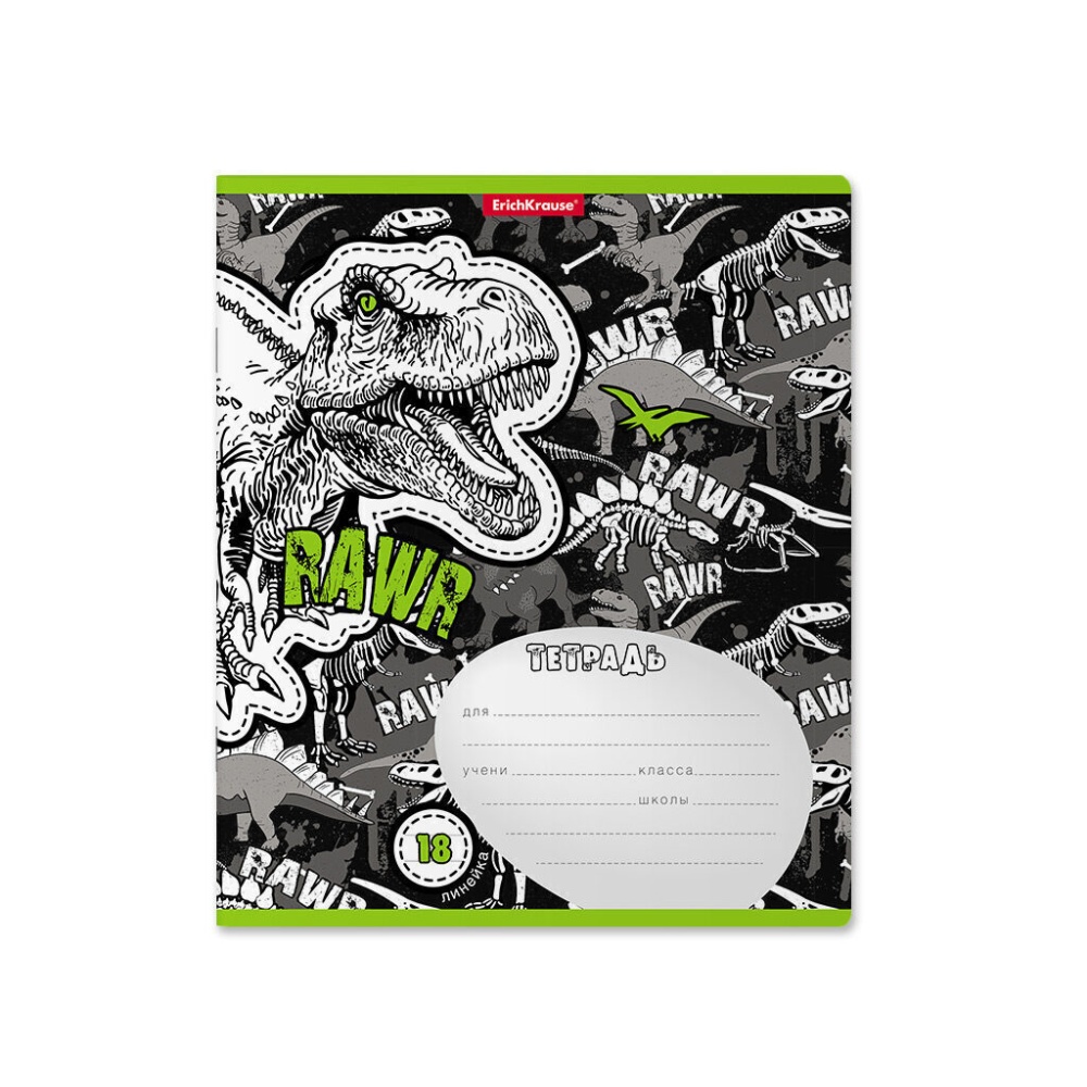 Тетрадь школьная ученическая ErichKrause Dinosaur Park, 18 листов, линейка (в плёнке по 10 шт.)