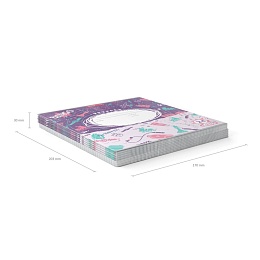 Тетрадь школьная ученическая формата А5+ (170х203 мм). Обложка из высококачественного мелованного картона плотностью 180 г/м2. В блоке 18 листов в клетку с полями. Бумага офсетная плотностью 60 г/м2. Цвет линовки - синий. Скругленные уголки обложки и блока. Тип скрепления - скоба. Тетради упакованы в термоусадочную пленку по 10 штук.