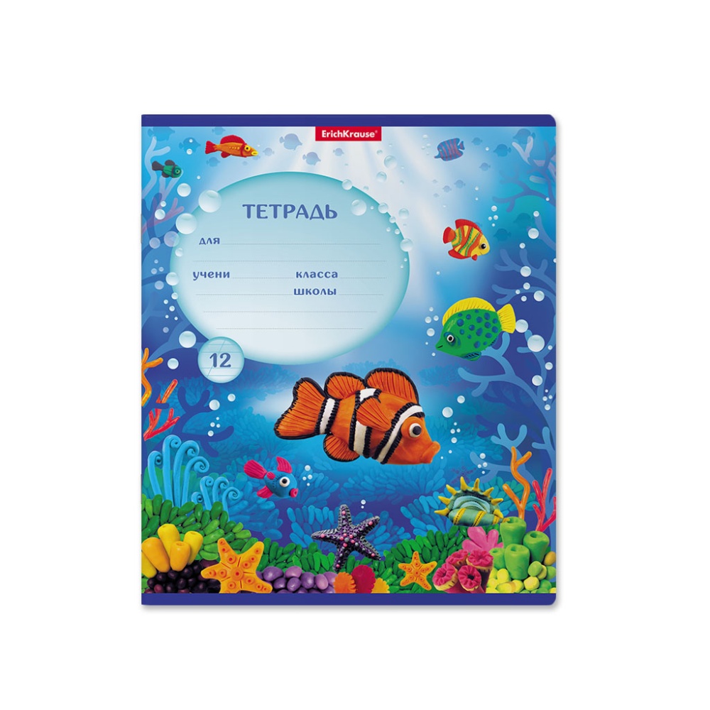 Тетрадь школьная ученическая ErichKrause Мир из пластилина, 12 листов, косая линейка (в плёнке по 10
