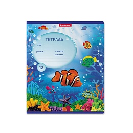 Тетрадь школьная ученическая формата А5+ (170х203 мм). Обложка из высококачественного мелованного картона плотностью 170 г/м2. В блоке 12 листов в косую линейку с полями. Бумага офсетная плотностью 60 г/м2. Цвет линовки - синий. Скругленные уголки обложки и блока. Тип скрепления - скоба. Тетради одного дизайна упакованы в термоусадочную пленку по 10 штук. Товар поставляется в нескольких вариантах дизайна без возможности выбора.