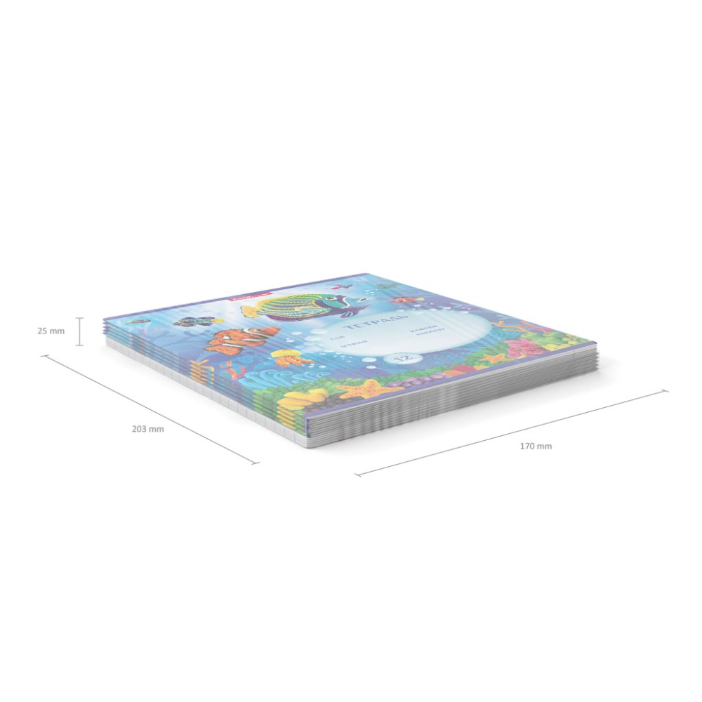 Тетрадь школьная ученическая формата А5+ (170х203 мм). Обложка из высококачественного мелованного картона плотностью 170 г/м2. В блоке 12 листов в линейку с полями. Бумага офсетная плотностью 60 г/м2. Цвет линовки - синий. Скругленные уголки обложки и блока. Тип скрепления - скоба. Тетради одного дизайна упакованы в термоусадочную пленку по 10 штук. Товар поставляется в нескольких вариантах дизайна без возможности выбора.