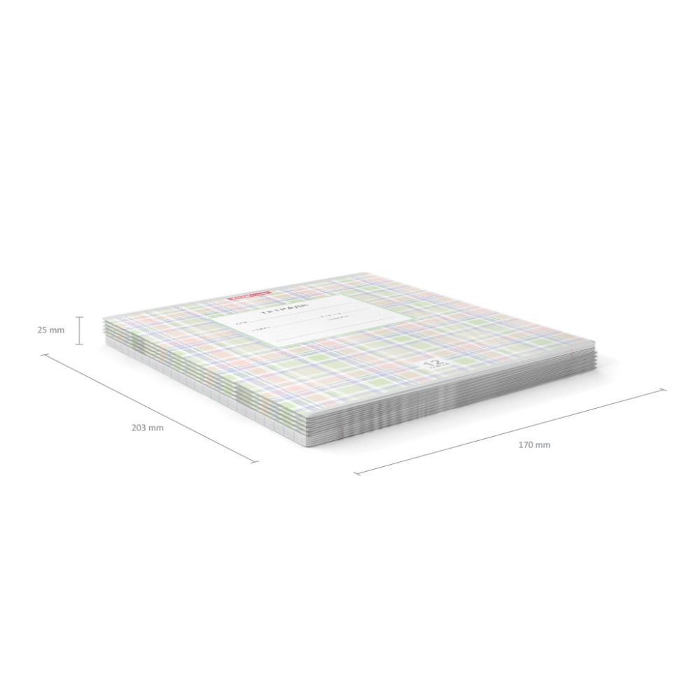 Тетрадь школьная ученическая формата А5+ (170х203 мм). Обложка из высококачественного мелованного картона плотностью 180 г/м2. В блоке 12 листов в клетку с полями. Бумага офсетная плотностью 60 г/м2. Цвет линовки - синий. Скругленные уголки обложки и блока. Тип скрепления - скоба. Тетради одного цвета упакованы в термоусадочную пленку по 10 штук. Товар поставляется в нескольких вариантах цвета без возможности выбора.