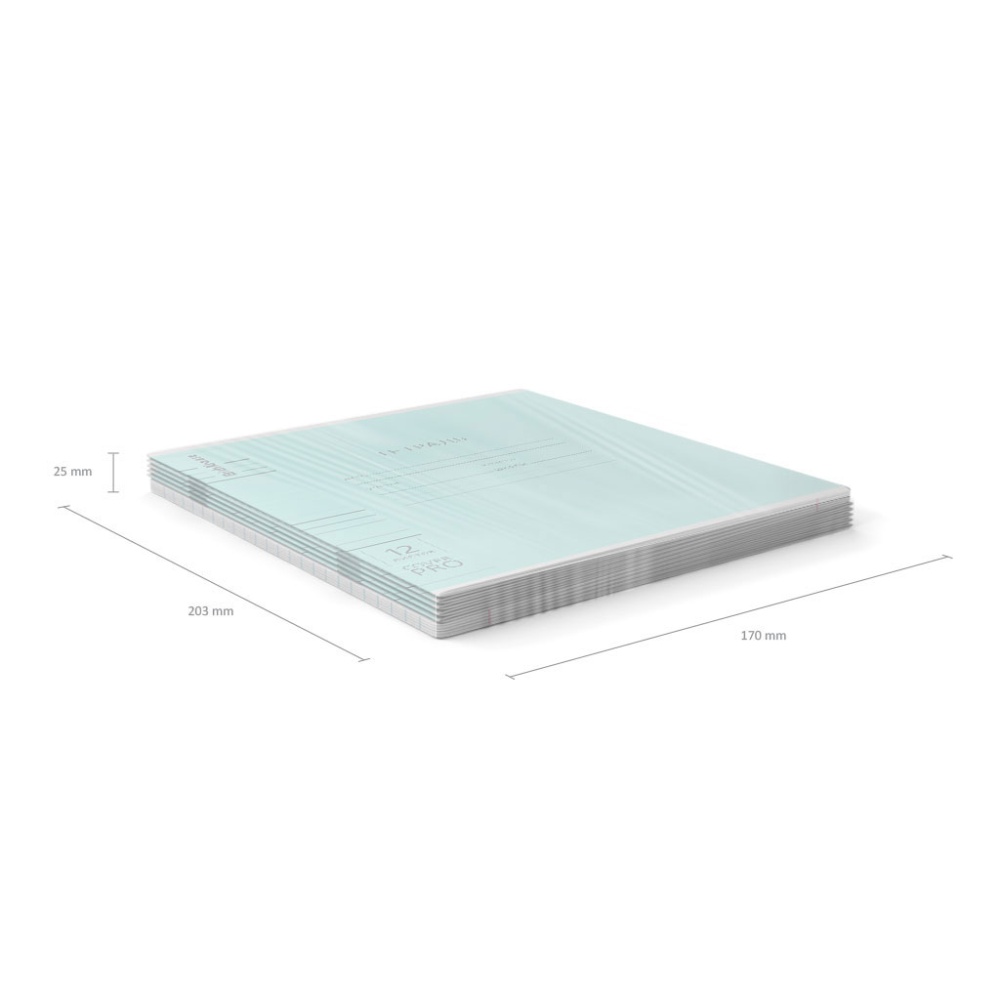 Тетрадь школьная ученическая формата А5+ (170x203 мм). Двойная обложка: внешняя выполнена из высококачественного износостойкого прозрачного пластика с текстурой апельсин, внутренняя из качественной мелованной бумаги. В блоке 12 листов в линейку. Бумага офсетная плотностью 60 г/м2. Цвет линовки синий. Скругленные уголки обложки и блока. Тип скрепления скоба.Тетради упакованы в термоусадочную пленку по 10 штук.