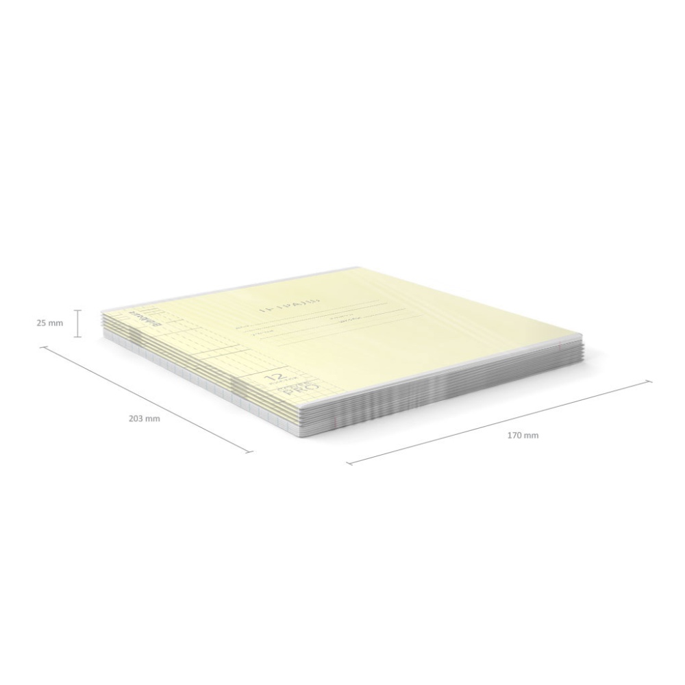 Тетрадь школьная ученическая формата А5+ (170x203 мм). Двойная обложка: внешняя выполнена из высококачественного износостойкого прозрачного пластика с текстурой апельсин, внутренняя из качественной мелованной бумаги. В блоке 12 листов в клетку. Бумага офсетная плотностью 60 г/м2. Цвет линовки синий. Скругленные уголки обложки и блока. Тип скрепления скоба. Тетради упакованы в термоусадочную пленку по 10 штук.