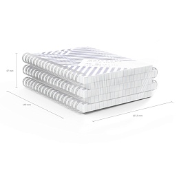 Тетрадь общая формата А6 (102x146 мм). Обложка из высококачественного износостойкого матового пластика с фактурой песок. В блоке 80 листов в клетку. Бумага офсетная плотностью 60 г/м2. Цвет линовки - синий. Скругленные уголки обложки. Тип скрепления - спираль. Тетради одного цвета упакованы в термоусадочную пленку по 5 штук.