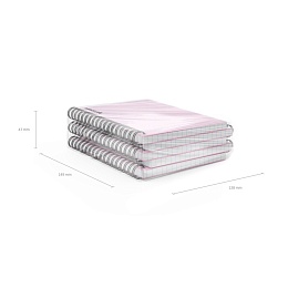Тетрадь общая формата А6 (102x146 мм). Обложка из высококачественного износостойкого глянцевого пластика. Пастельный цвет обложки c перламутром. В блоке 80 листов в клетку. Бумага офсетная плотностью 60 г/м2. Цвет линовки - синий. Скругленные уголки обложки. Тип скрепления - спираль. Тетради одного цвета упакованы в термоусадочную пленку по 5 штук.