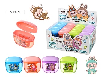 Точилка пластик.с контейнером. ЗУБАСТИК (Лабубу), 2 отверстия, 4 дизайна
