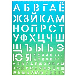 Трафареты буквы и цифры "deVENTE" 210x297x0,5 мм, полипропилен, 500 мкм, русский алфавит, цифры, знаки, большие прописные буквы - 30 мм, полипропилен, 500 мкм, маленькие прописные буквы - 10 мм, полипропилен, 500 мкм, цифры - 10 мм, полипропилен, 500 мкм, цвет деграде салатово-голубой, индивидуальная упаковка