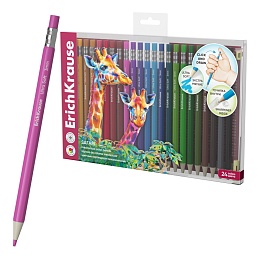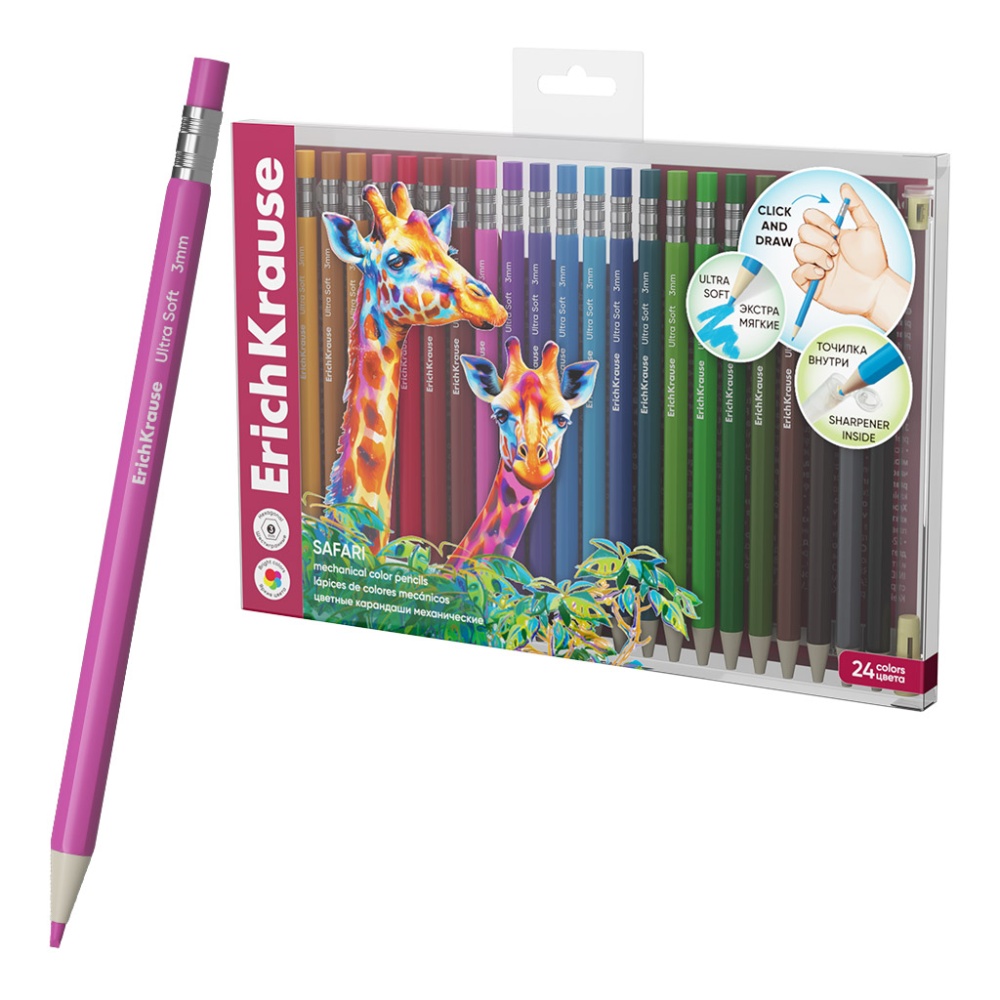 Цветные карандаши механические ErichKrause Сафари шестигранные, грифель 3 мм, 24 цвета с точилкой (в