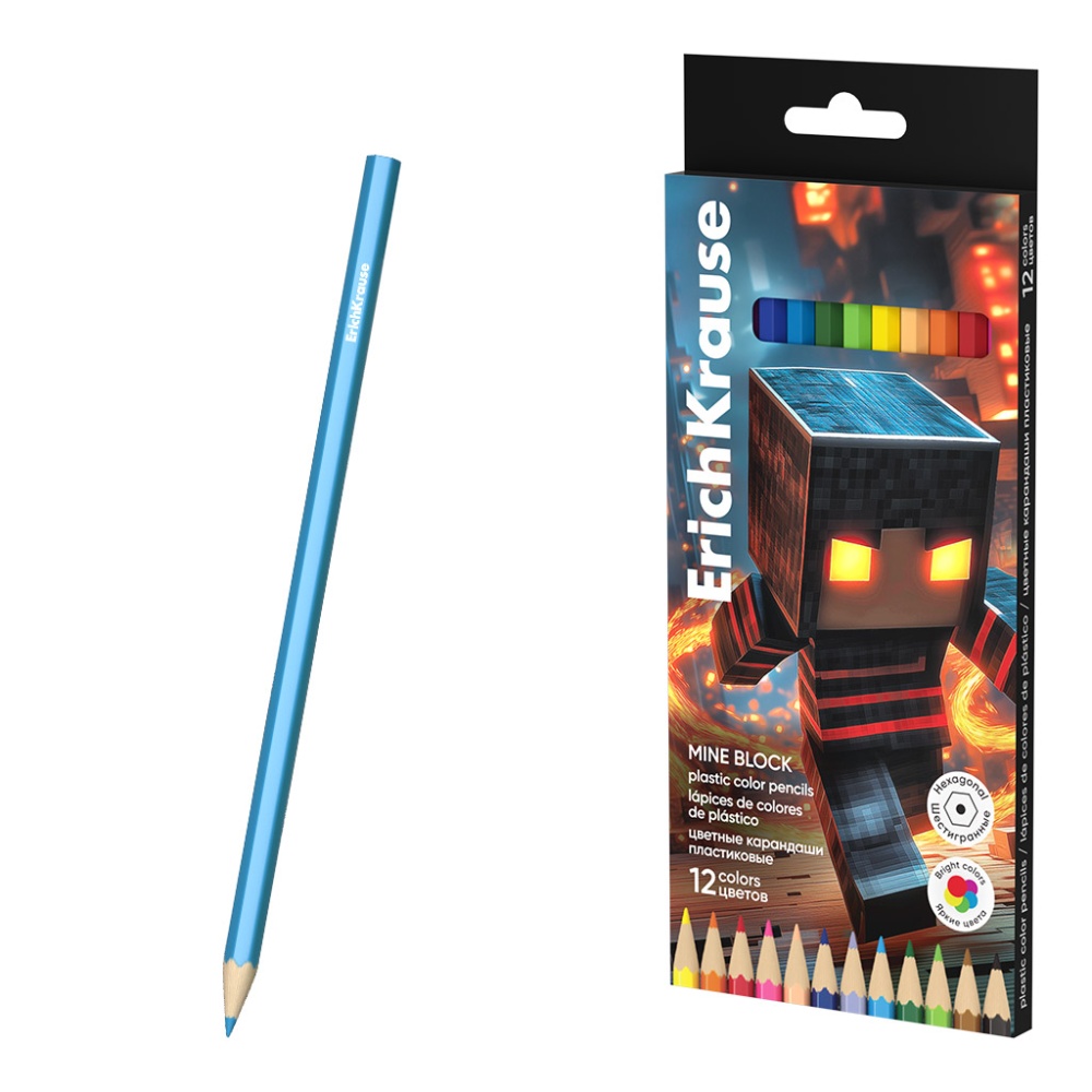 Цветные карандаши пластиковые ErichKrause Кубомир шестигранные 12 цветов (в коробке с европодвесом 1