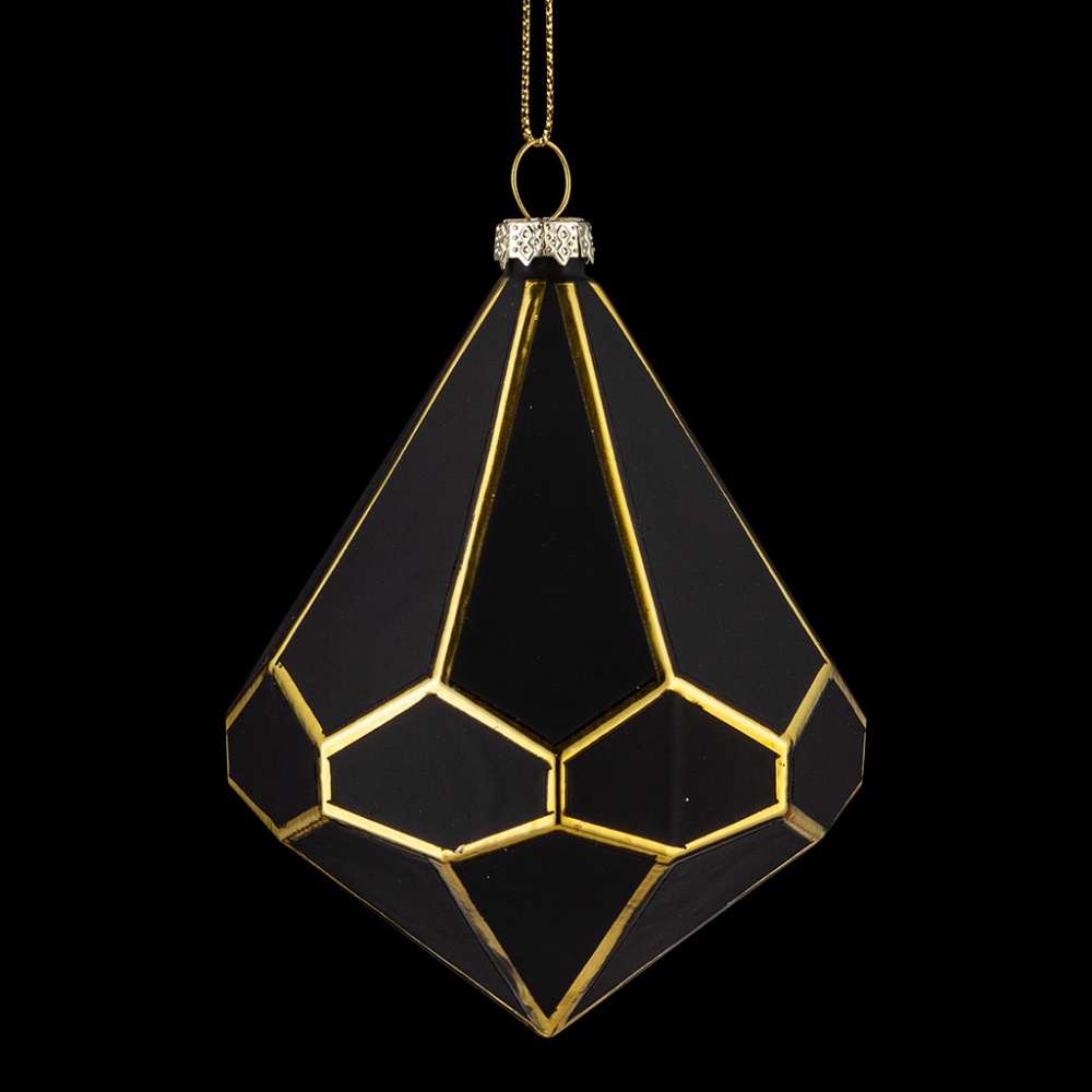 Сочетание черного и золотого цветов в дизайне интерьера считается верхом элегантности. Такая комбинация создает роскошный образ, который подойдет для праздничной вечеринки. Крупное украшение в форме кристалла выполнено из стекла высокого качества. Золотая окантовка подчеркивает матовое черное покрытие граней. Групповая упаковка предназначена только для безопасной транспортировки и хранения.