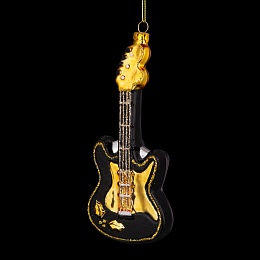 Сочетание черного и золотого цветов в дизайне интерьера считается верхом элегантности. Такая комбинация создает роскошный образ, который подойдет для праздничной вечеринки. Потрясающая черная гитара с золотыми элементами порадует любителей музыки. Украшение потрясающе смотрится на елке или в интерьере как оригинальный сувенир. Изделие выполнено из стекла высокого качества. Групповая упаковка предназначена только для безопасной транспортировки и хранения.