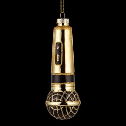 Сочетание черного и золотого цветов в дизайне интерьера считается верхом элегантности. Такая комбинация создает роскошный образ, который подойдет для праздничной вечеринки. Глянцевый сверкающий микрофон порадует любителей песен. Хорошая музыка поможет феерично встретить Новый год. Украшение выполнено из стекла высокого качества. Групповая упаковка предназначена только для безопасной транспортировки и хранения.