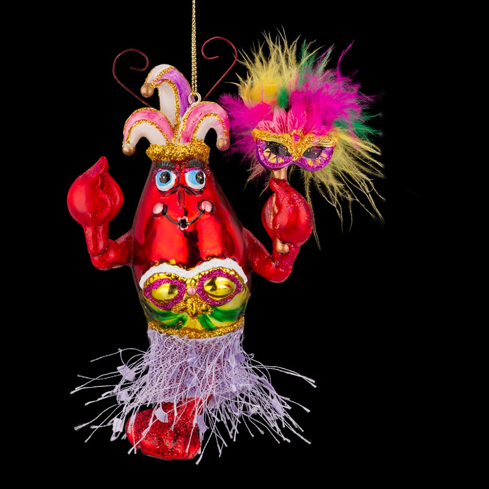 Яркие веселые персонажи Венецианского карнавала на праздничной елке вовлекут в вихрь итальянского веселья! Дама-лобстер подобрала для фестиваля смелый наряд и эффектный макияж с длинными накладными ресницами. Бахрома на юбке эффектно колышется во время танца. В клешне она держит маску, декорированную пушистыми перьями. Изделие выполнено из стекла высокого качества. Клешни, маска и колпак сделаны из полирезины, что позволяет максимально точно передать детализацию персонажа. Украшение достаточно тяжелое и больше подходит для искусственных елок. Групповая упаковка предназначена только для безопасной транспортировки и хранения.