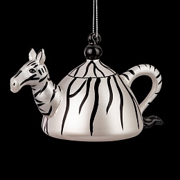 Уникальная елочная игрушка, аналог которой сложно найти - отличный презент к Новому году. Это не просто чайничек - это оригинальный объемный персонаж! Вместо носика у чайника голова зебры, а вместо ручки - милый хвост с кисточкой. Украшение выполнено из стекла высокого качества с матовым жемчужным покрытием. Голова и хвост сделаны из полирезины, что позволяет максимально точно передать детализацию. Изделие является относительно тяжелым, предпочтительно использование на искусственной елке. Групповая упаковка предназначена только для безопасной транспортировки и хранения.