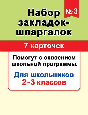 Набор закладок картонных 77*201мм "Шпаргалки 3" 7шт., 2-3 кл.