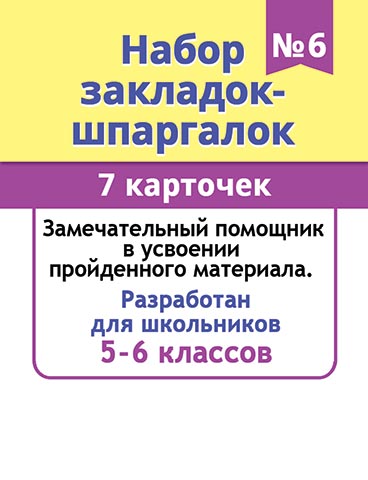 Набор закладок картонных 77*201мм "Шпаргалки 6" 7шт., 5-6 кл.