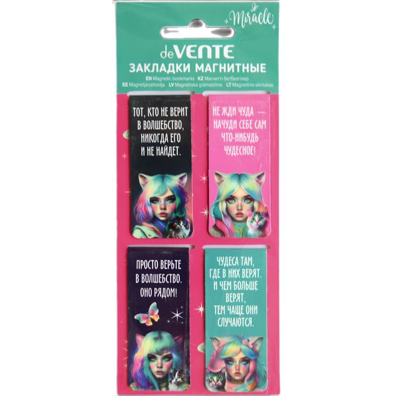Набор закладок для книг "deVENTE. Miracle" магнитных бумажных, 4 шт в блистерной упаковке, размеры закладок в сложенном виде 25x56,6 мм