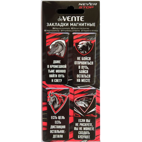 Набор закладок для книг "deVENTE. Never Stop" магнитных бумажных, 4 шт в блистерной упаковке, размеры закладок в сложенном виде 25x56,6 мм