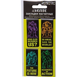 Набор закладок для книг "deVENTE. Robotic" магнитных бумажных, 4 шт в блистерной упаковке, размеры закладок в сложенном виде 25x56,6 мм