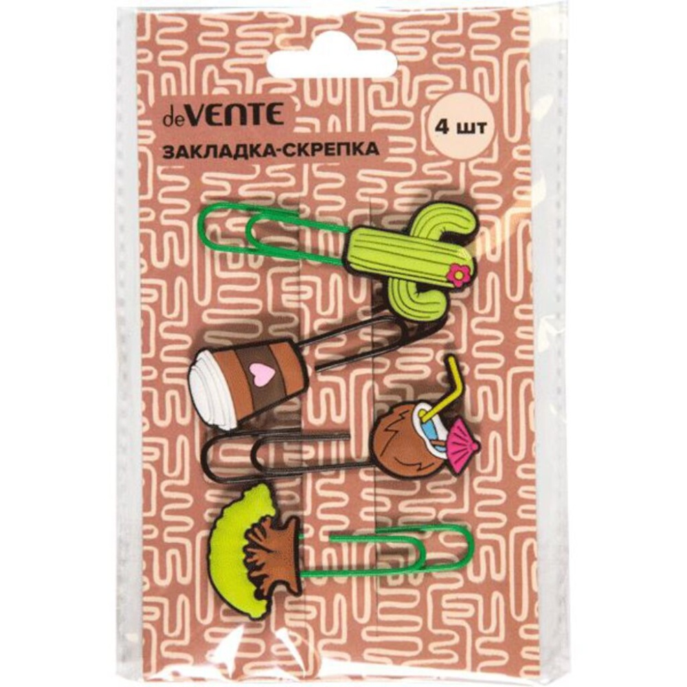 Закладка-скрепка "deVENTE. Enjoy traveling" металлическая овальная цветная 60x30 мм с элементами декора, 4 шт, в блистерной упаковке