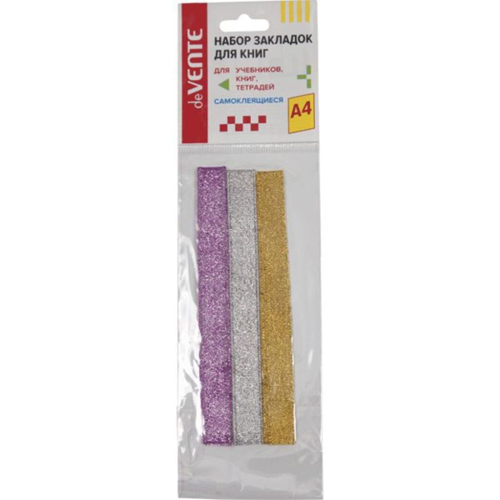 Набор закладок-ляссе "deVENTE. Shine" самоклеящихся для книг формата A4, 3 широких ленты 12x400 мм, лента с блестками, в пластиковом пакете