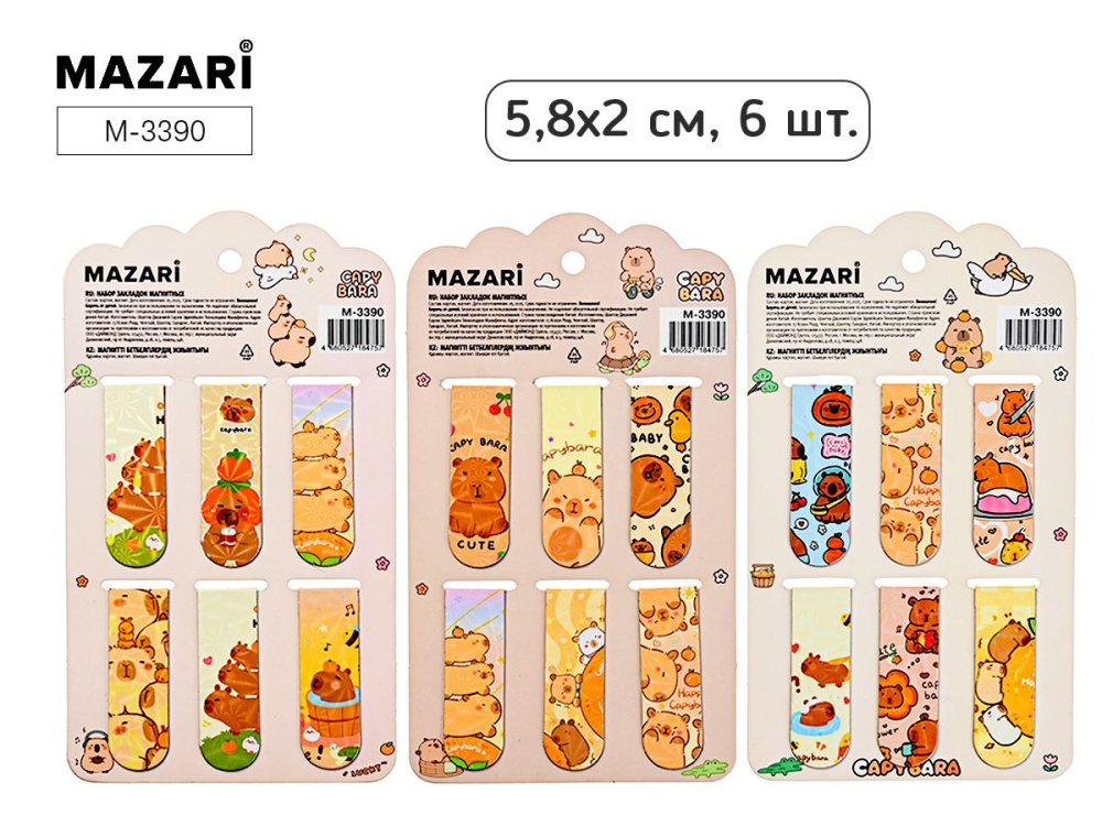 Закладки магнитные КАПИБАРА. Набор 6 шт. 5.8х2см, ассорти 3 дизайна
