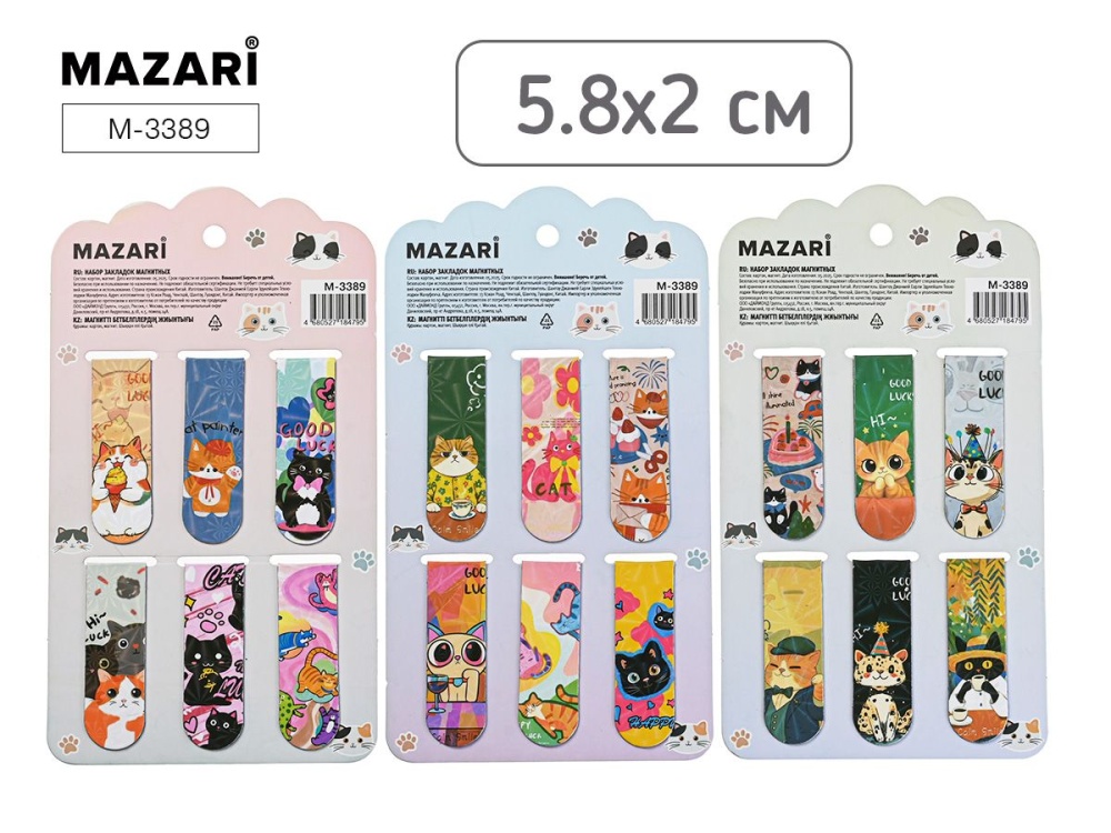 Закладки магнитные КОТИКИ. Набор 6 шт. 5.8х2см, ассорти 3 дизайна