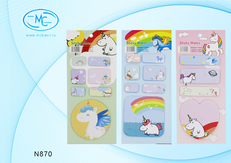 Закладки бумажные для книг. Блок с клеевым краем. Единорог в ассортименте.