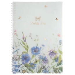Тетрадь В5 пластик, эластичн.гребень, 80л. "Бабочки-Цветы" тисн.фольгой