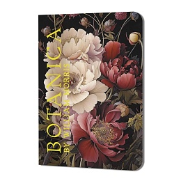 Записная книжка 90*120мм 24л. картон, скоба "BOTANICA by William Morris. Пионы на тёмном фоне" точ