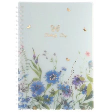 Записная книжка В6 пластик, эластичн.гребень, 80л. "Бабочки-Цветы" тисн.фольгой