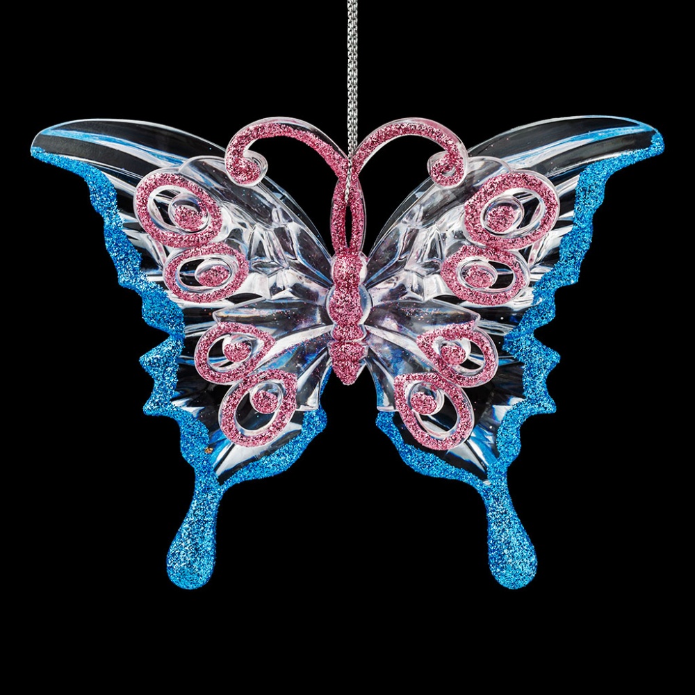 Объемная бабочка декорирована яркими блестками голубого и розового цветов, создающих элегантную цветовую композицию. Техническая упаковка - полибэг, только для безопасной транспортировки и хранения.
