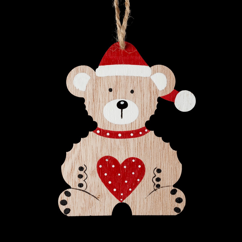 Украшения из древесины - тренд в области праздничного декора. Легкие и безопасные в использовании, на елке они смотрятся очень необычно. Медвежонок раскрашен очень натуралистично. Обратная сторона не окрашена, что позволяет использовать оборот для поздравлений или рисунков. Это хорошая возможность для детского творчества. Отличный вариант для семьи с маленьким ребенком, а также детских учреждений. Групповая упаковка предназначена только для безопасной транспортировки и хранения.