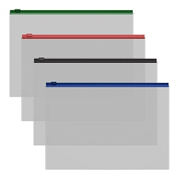 ZIP-пакет формата А4 из высококачественного прозрачного пластика с текстурой поверхности "апельсиновая корка", на которой не видно отпечатков пальцев и мелких царапин . Предназначен для хранения и транспортировки небольшого количества документов.Цвет ZIP-пакета - прозрачный; цвет молнии - ассорти: черный, синий, зеленый, красный. Удобная ZIP-молния обеспечивает быстрый доступ к бумагам. ZIP-пакет вмещает до 100 бумажных листов. Размер ZIP-пакета - 334х246мм, толщина материала - 0.12мм. Код и баркод на каждой единице товара.